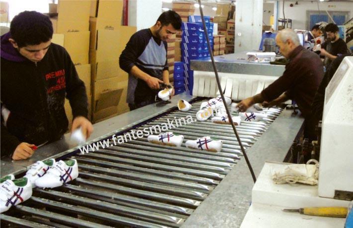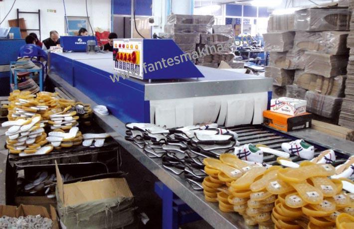 Boru veya palet sistemli zaman ayarlıdır. Fotosel sayesinde ayakkabıların düşmesi engellenmektedir. İsteğe göre ısıtma fırınlı olarak ve 5 metreden 100 metreye kadar imal edilebilir.